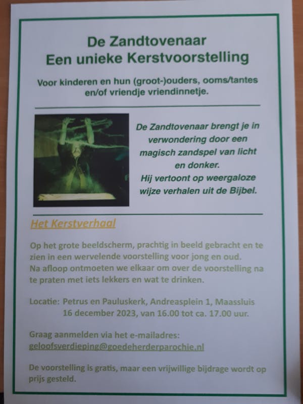 Kerstverhaal door de Zandtovenaar op groot beeldscherm.