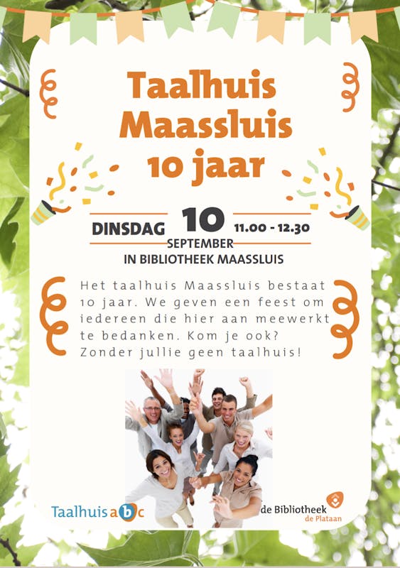 Op dinsdag 10 september vieren we dat het Taalhuis Maassluis 10 jaar bestaat. Dit mijlpaalmoment staat in het teken van een feestelijke terugblik, een blik op de toekomst én natuurlijk taart. Iedereen is van harte uitgenodigd om bij dit bijzondere moment aanwezig te zijn.