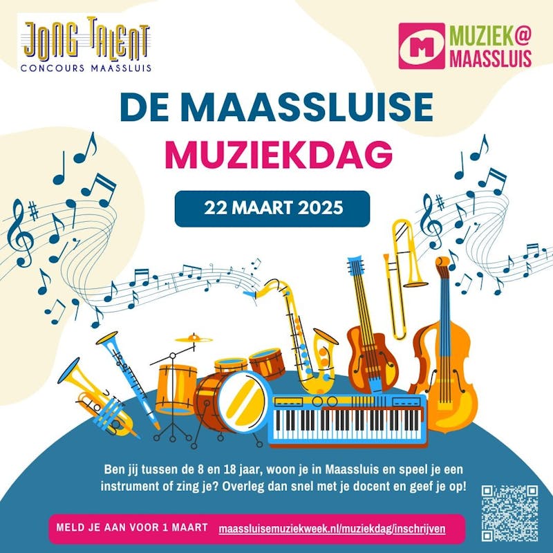 Deze dag is speciaal voor jongeren uit Maassluis die muziek maken. Alle instrumenten zijn welkom, drums, keyboard, zang, maar ook piano, harp, klarinet of hoorn. Heb je een ander instrument, schrijf je in en verras ons. We hopen op een groot aantal deelnemers.