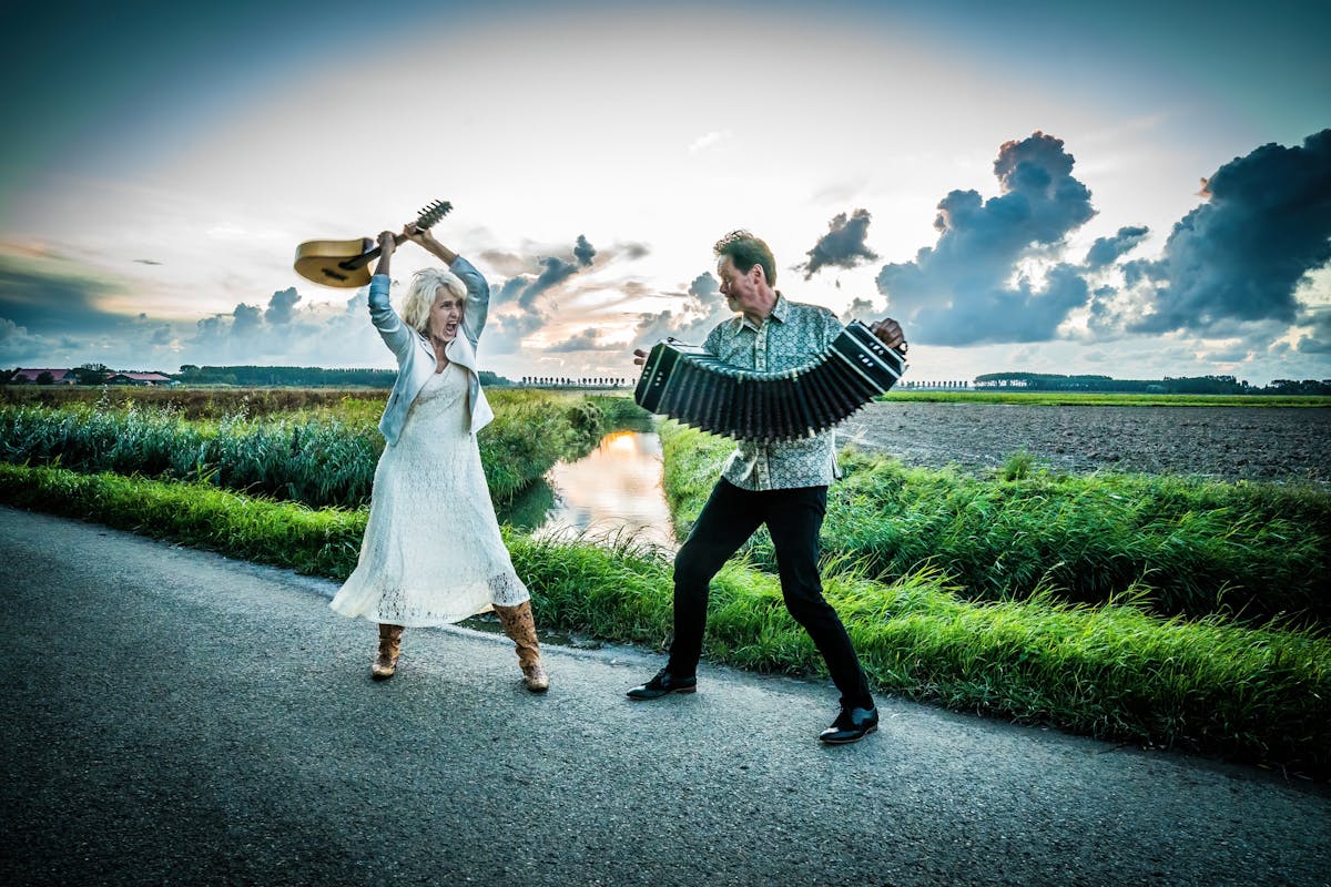 In de schaduw van de Corona-tijd, gezeten in het Beemster weiland op anderhalve meter afstand van elkaar, bestookten Kraayenhof en Jansen elkaar met alles wat ze mooi vonden, van Argentijnse volksmuziek tot Schotse traditionals, en van Nederlandse tot Arabische klanken.