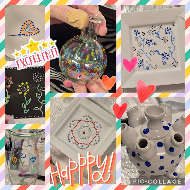 Creatieve workshop: Je eigen glas, vaas, bord, kopje, porselein stippen/dotten met speciale verf en materialen.