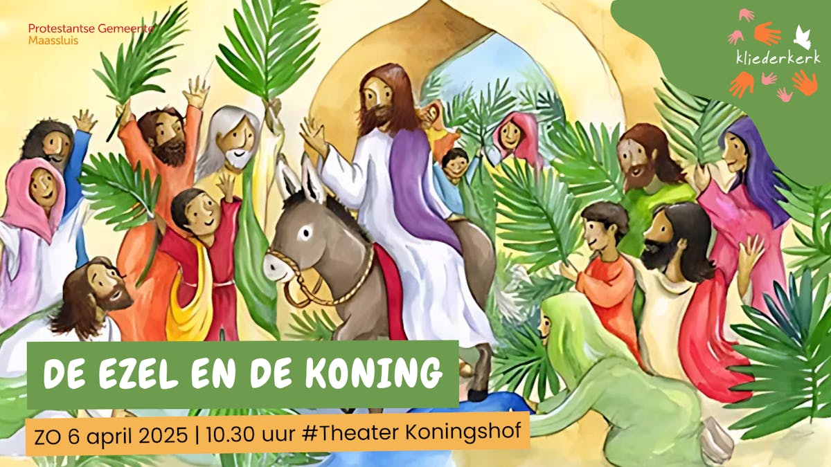 Op weg naar Pasen reizen we mee met Jezus naar Jeruzalem. Daar is de sfeer feestelijk, want de Koning komt! Maar in plaats van op een machtig paard, rijdt Hij op een eenvoudige ezel. Dat lijkt wel de wereld op z’n kop! We sluiten de kliederkerk af met een gezellige lunch. Wij zorgen voor soep en matzes. Neem jij ook iets lekkers mee om te delen? We zien je graag op 6 april.