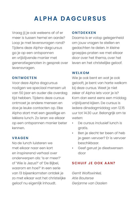 In de Groote Kerk begint een Alpha cursus, met ingang van 4 maart! We beginnen met een lunch, en gaan daarna in gesprek!