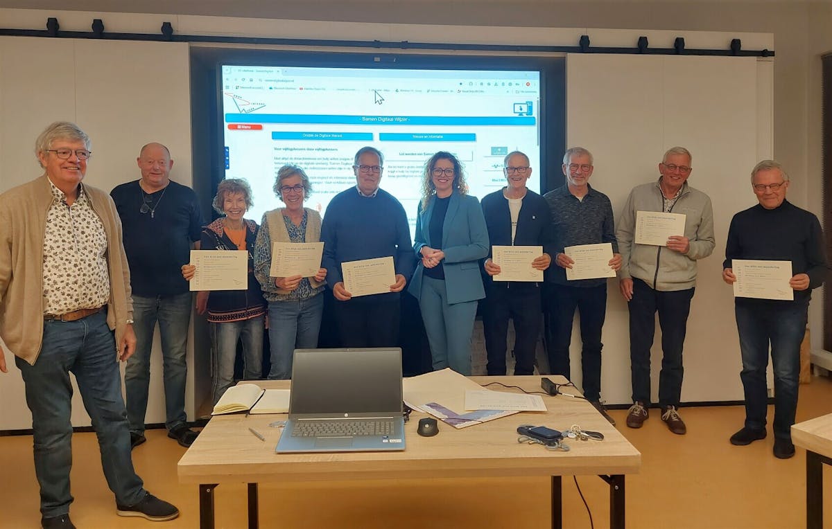 Maandagavond 10 november vond de feestelijke afsluiting plaats van de eerste avondworkshop Windows 11, georganiseerd door Samen Digitaal Wijzer. Tijdens deze bijeenkomst reikte wethouder Denise Mulder de certificaten en blijken van waardering uit aan de deelnemers.