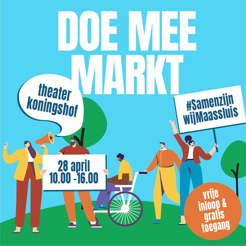 In de meivakantie, op maandag 28 april van 10.00 - 16.00 uur, is er weer een gezellige Doe Mee Markt in Theater Koningshof in Maassluis.🚶♀️💃 Op deze dag laten organisaties en instellingen uit Maassluis zichzelf zien met een leuke doe activiteit, zoals lasergamen, ponyrijden, schminken, boodschappenspel, springkussen, diverse workshops, theater, dans en nog veel meer. 🤾♀️🤸