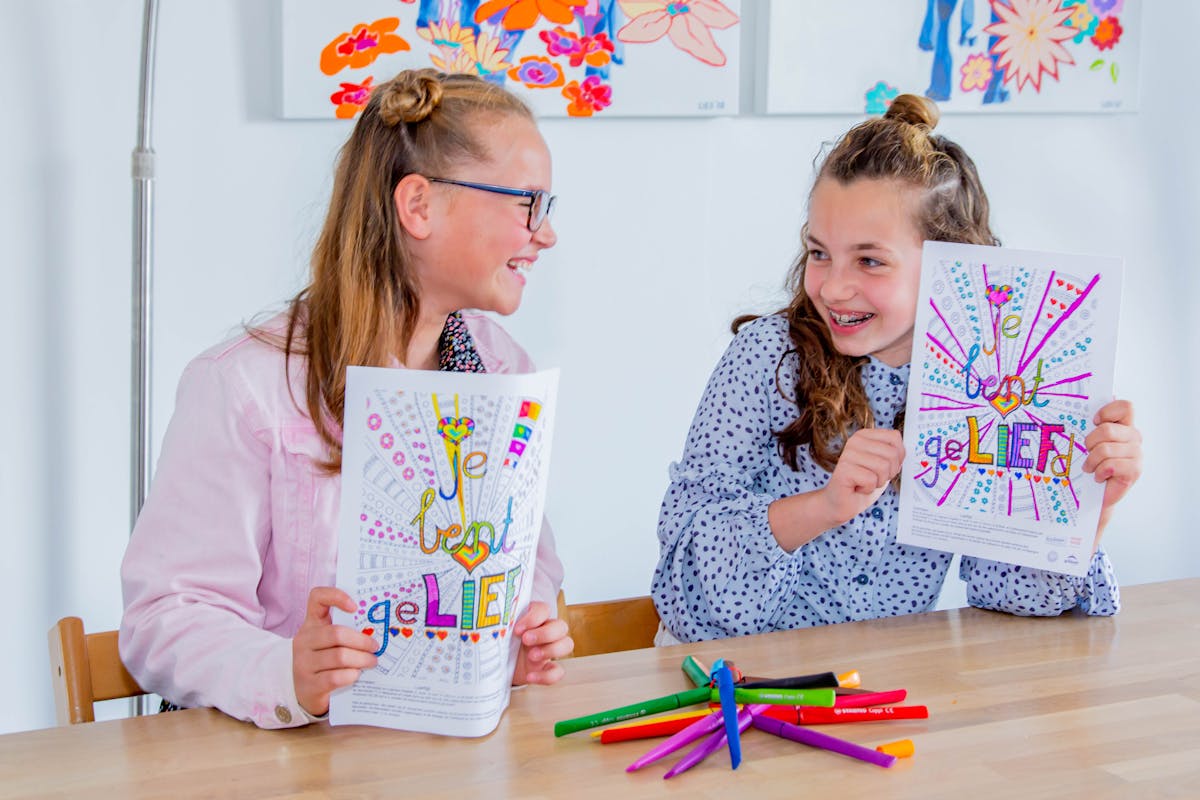 Elise en Liese hebben zin in hun "werk" als juryleden bij de kleurwedstrijd. De twee vriendinnen hopen dat de tekst op de kleurplaat "Je bent geliefd" landt in de harten van de kinderen die kleuren en van de mensen die kleurplaten zullen ontvangen. Coördinator Tanja Cats van Stichting Present "Iedereen heeft goede woorden nodig om te groeien en deze twee jonge meiden snappen dat prachtige principe heel goed, ze maken zoveel plezier, delen dromen en geven elkaar complimentjes. Een positief woord, een bemoediging en zeggen dat je in iemand gelooft doet wonderen!".