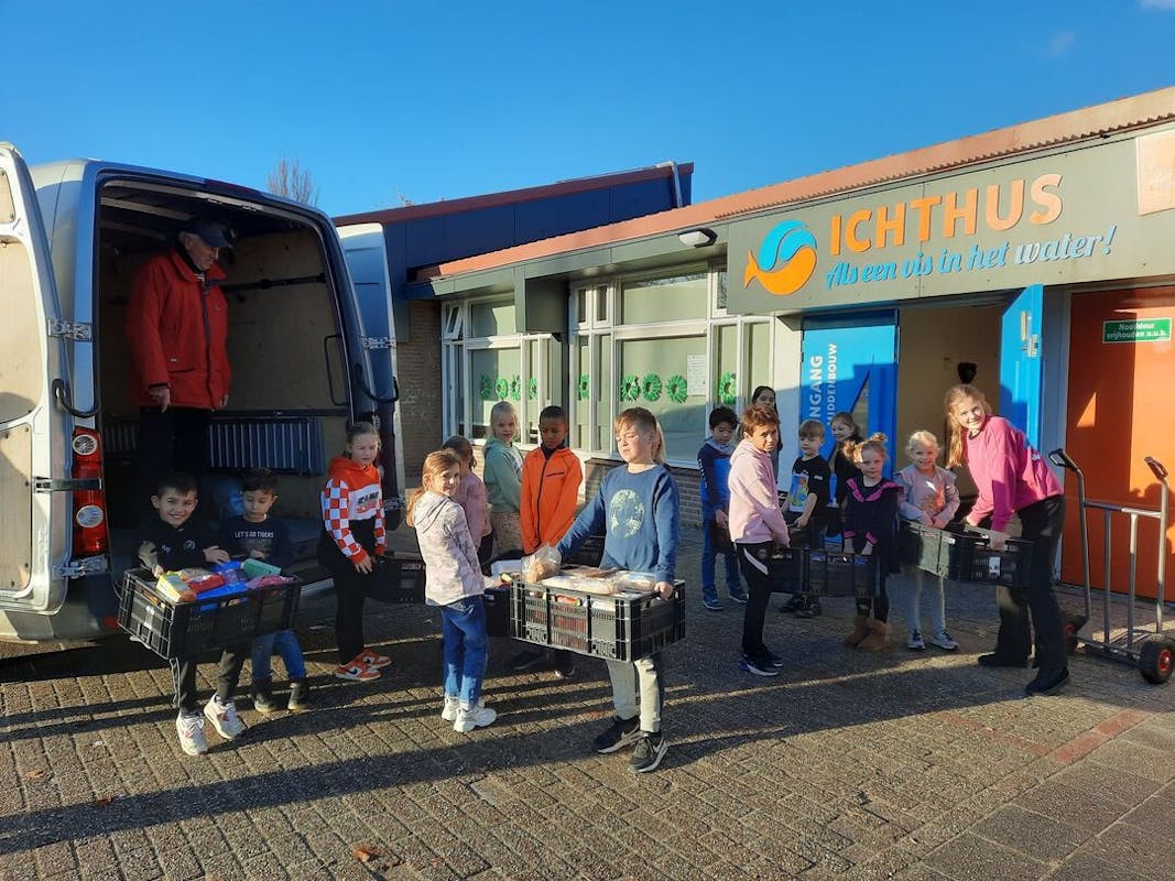 Ook de basisscholen in Maassluis en Maasland doen flink hun best om onze cliƫnten te helpen. Bij IKC Ichthus en bij IKC het Balkon en IKC De Kindertuin hebben we afgelopen vrijdag al een bus vol goederen opgehaald en vandaag weer bij de Groene Oase in Maasland. In Maasdijk stond een bus vol producten op ons te wachten waarvan ook een deel bij de scholen vandaan kwam.
