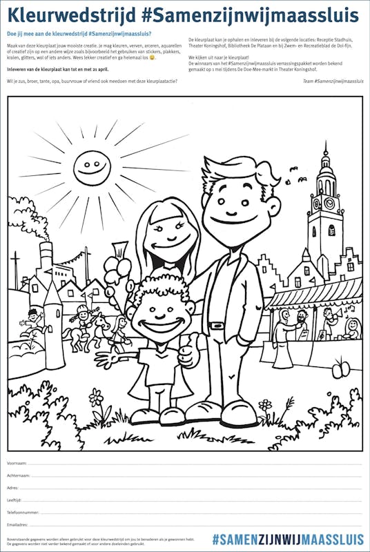 De kleurplaat kun je ophalen en inleveren bij de volgende locaties: gemeentehuis Maassluis, Theater Koningshof, Bibliotheek De Plantaan en bij Sport- en recreatiebad Dol-fijn.