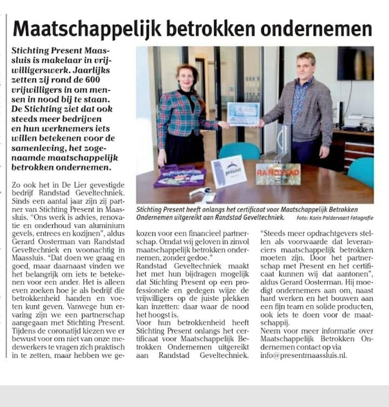 Waarom heeft Randstad Geveltechniek Stichting Present gekozen als partner om Maatschappelijk Verantwoord mee te ondernemen?