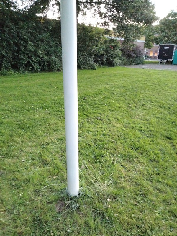 Vlagmast opgeknapt kunstwerk eraf en weer wit erop.