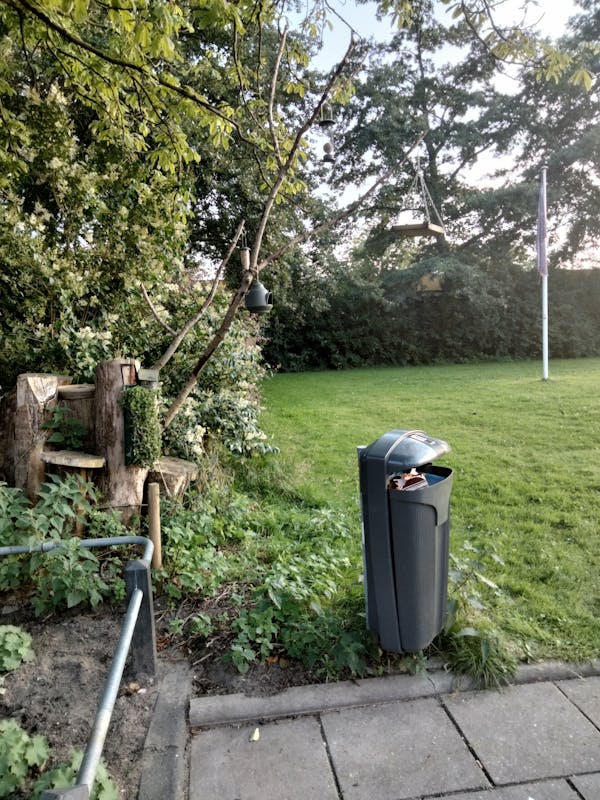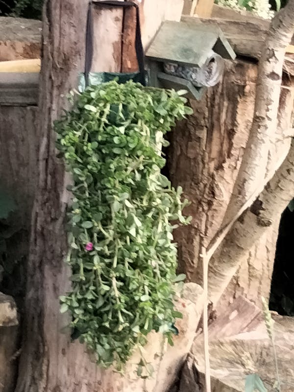 Vogelvoederplaats opgeleukt met een plantzak (sierpostelein)