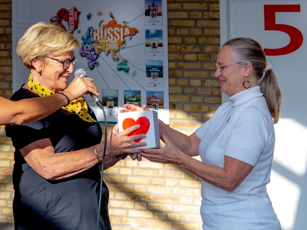 Vrijwilliger Marja den Boer mocht vorig jaar zelf een steen ontvangen en heeft er tijdens het tweedehands kleding event Tiptop voor Nop een uitgereikt aan Renee. Marja lichtte toe dat zij ervan onder de indruk is, hoe Renee handen en voeten geeft aan omzien naar andere en dat zij daarmee een inspiratiebron is voor anderen. Volgend jaar mag Renee iemand anders in het zonnetje zetten met de steen.