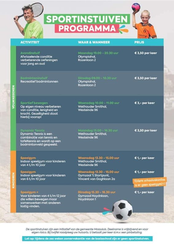 In onze agenda vind je het ruime aanbod sportinstuiven 🏓🤸♂️🏋️♂️🤾♂️