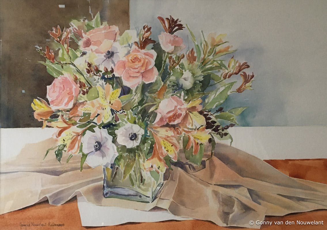 De tentoonstelling met als thema ‘bloemen’ van Gonny van den Nouwelant is nog te bekijken tot en met 27 november 2025 in de wandelgang van de Tweemaster, Vondelpark 2, Maassluis.